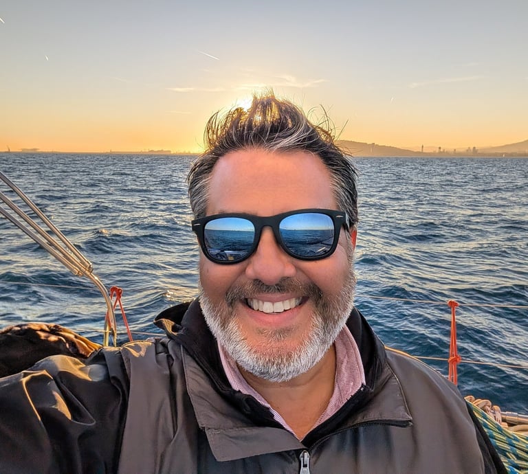 The pic is Alvaro enjoying Barcelona's port on a sail boat.